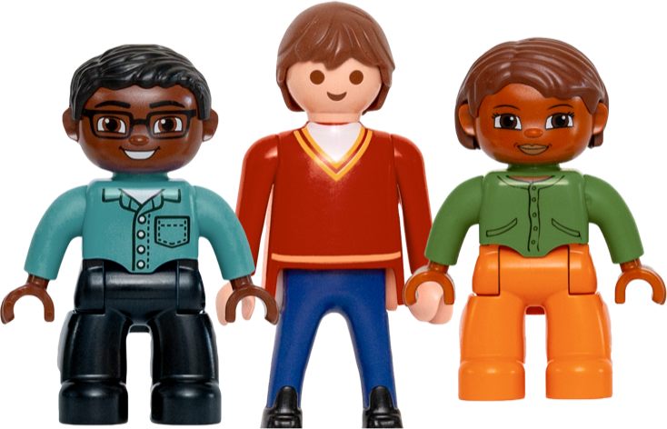 Je hoeft geen tijd meer te verdoen door zelf de materialen te verzamelen, dat hebben wij al voor je gedaan zodat je meteen na je cursus aan de slag kunt. We hebben nu een mooie samenstelling van poppetjes en materialen en de kapjes (Duplo-baby’s) zijn terug! Met de grote koffer (35 cm) heb je extra ruimte om die naar eigen inzicht aan te vullen. Vanaf eind 2024 is de inhoud van de koffer iets aangepast: minder petten en helmen, dus meer bruikbare poppetjes! Bijgevoegd is een gebruiksaanwijzing.